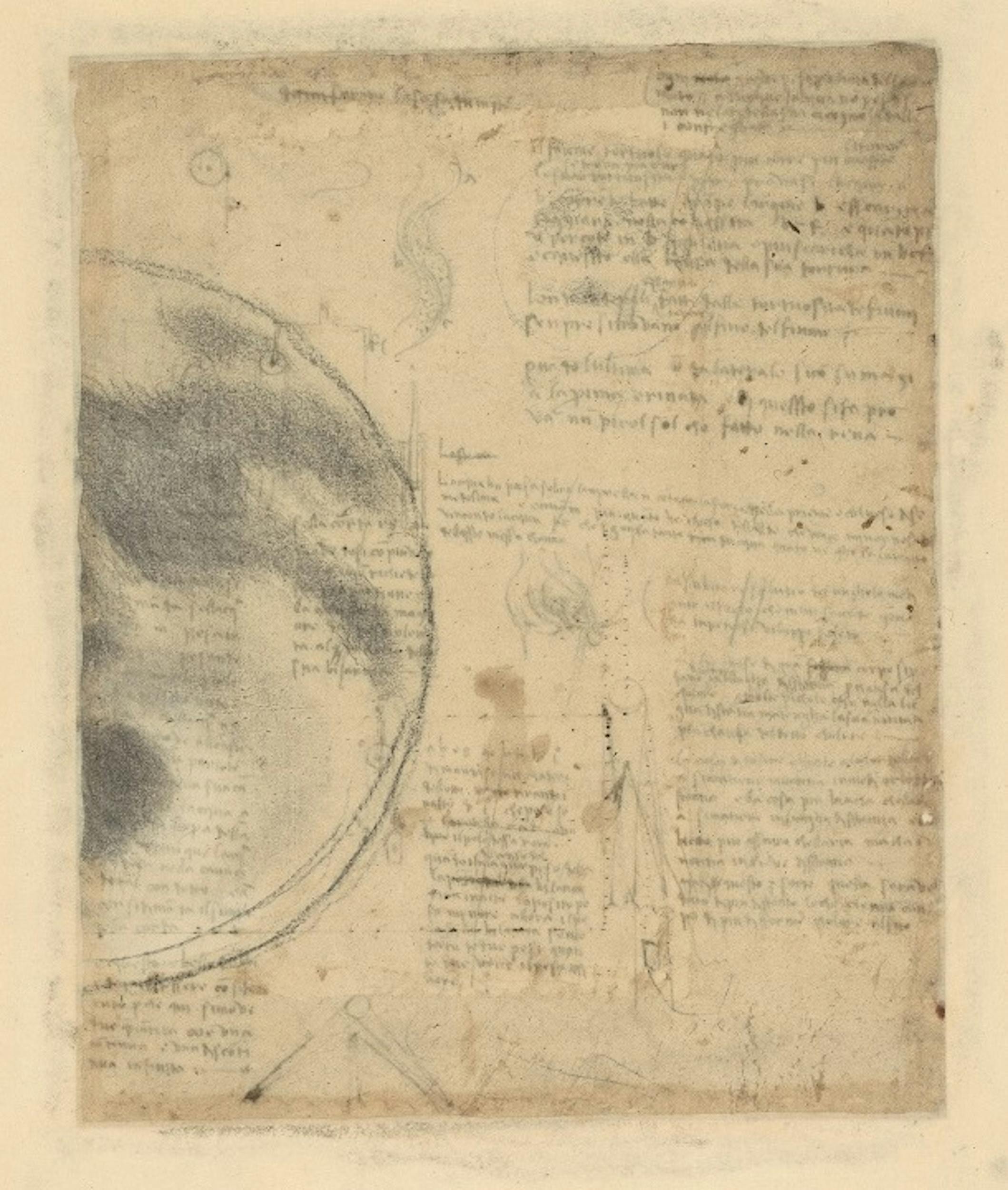 Leonard de Vinci, Codice Atlantico, "La Lune" (f. 674v), 1513-1514. Crédits : Biblioteca Ambrosiana.